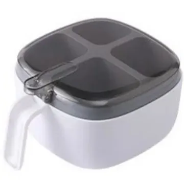 علبة تخزين شيك بـ4 أقسام منفصلة وغطاء محكم. مناسبة للتسالي، المكسرات، الأدوات الصغيرة، أو أي حاجات محتاجة ترتيب بشكل منظم وجذاب.