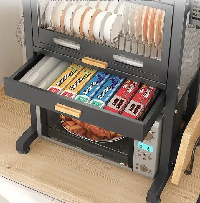 حوّل مساحة الميكرويف لمكان منظم وعملي مع مطبقيّة فوق الميكرويف متعددة الاستخدام. تصميم قوي لحمل الأطباق وأدوات المطبخ مع درج تخزين ورف علوي، مع حماية من الأتربة وباب منزلق شفاف. حل مثالي لتوفير المساحة والحفاظ على شكل مطبخ أنيق.