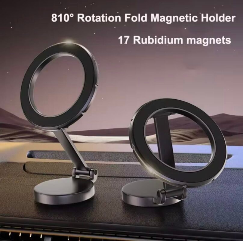 حامل مغناطيسي للهاتف قابل للطي والدوران 810° – مزوّد بـ 17 مغناطيس روبيديوم قوي